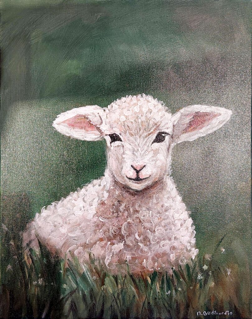 Rest in the Green Pasture depicts a gentle lamb lying peacefully amid lush, vibrant grass, reflecting the promise of Psalm 23:2: that God lovingly leads us to places of rest and provision. The soft textures and calming shades of green convey a sense of safety, security, and divine care, while delicate highlights suggest the warm, nurturing touch of God’s presence. The composition invites viewers to pause, reflect, and trust that, like the lamb in the pasture, we are guided, provided for, and given rest in His faithful care.
